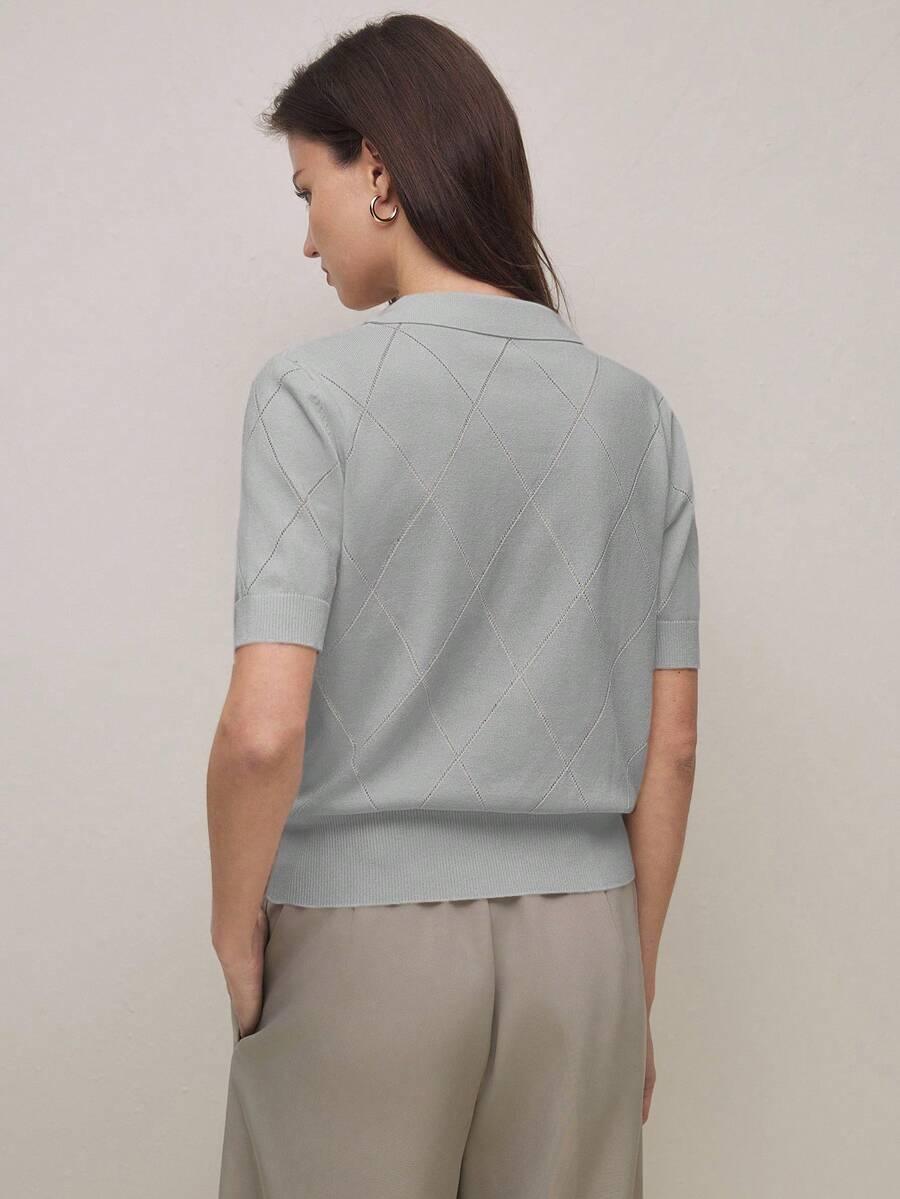 Maglione a maniche corte con colletto polo in maglia a rombi, morbido e casual
