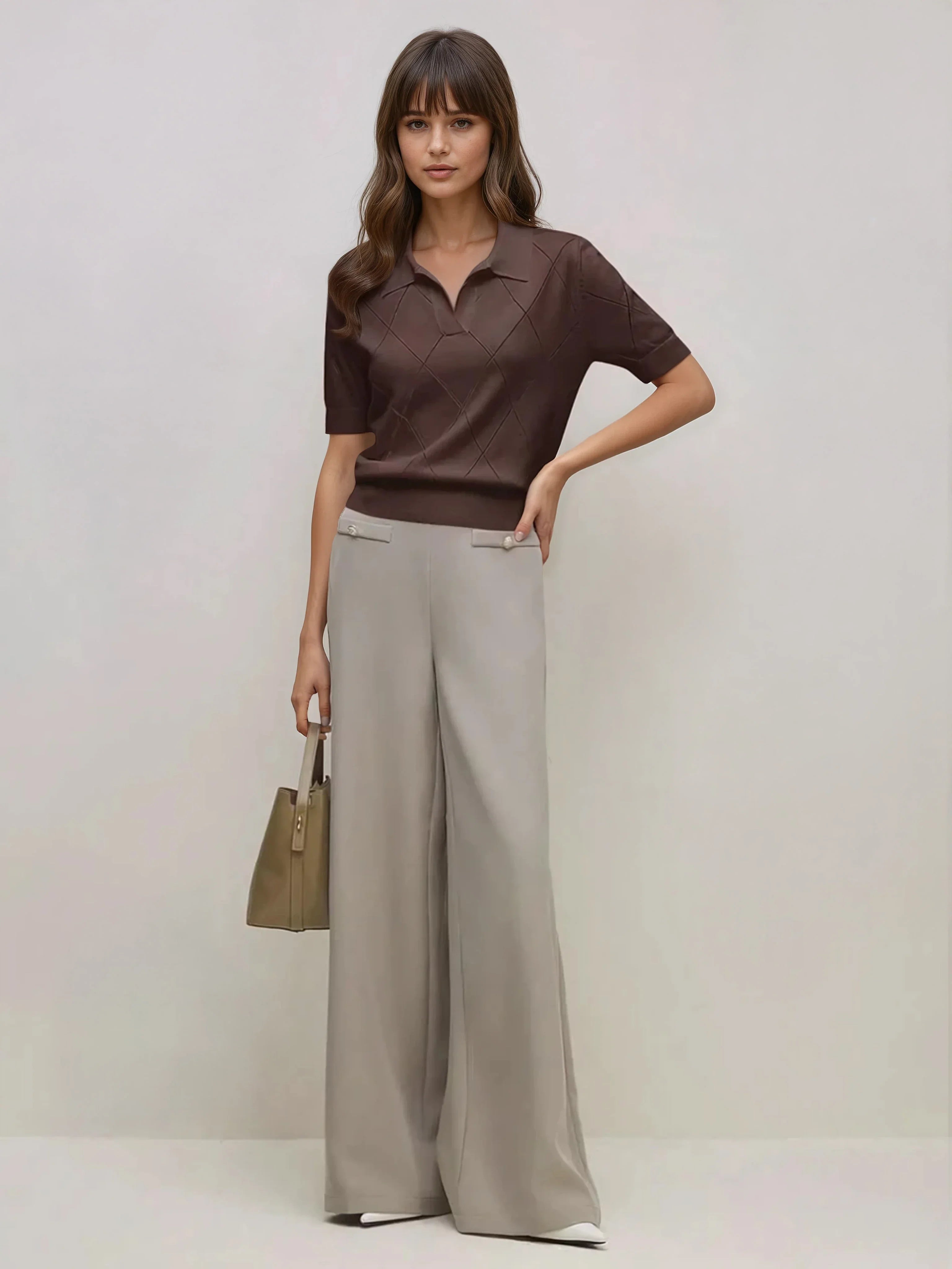 Polo con colletto a rombi in maglia, essenziale per l'ufficio